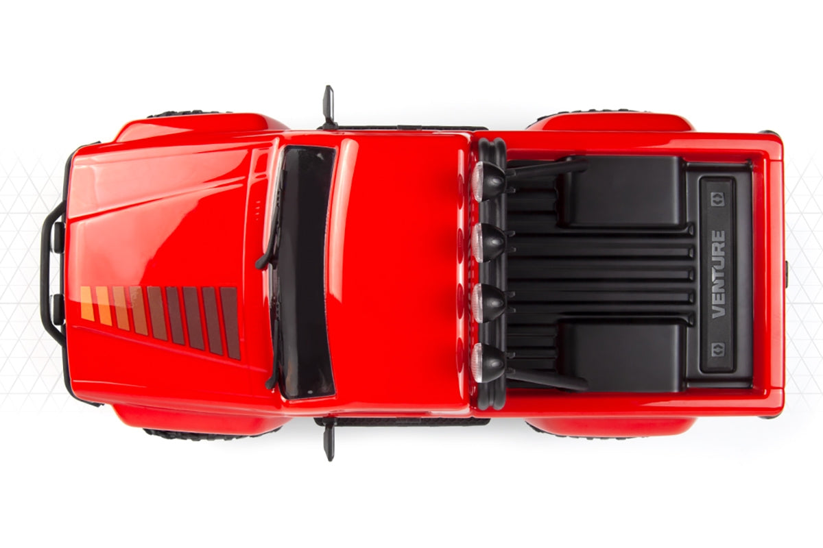Der Venture18 wird RTR (Ready-to-Run) geliefert. Akku und Ladegerät sind bereits enthalten, sodass das Fahrzeug nach dem Einlegen der Senderbatterien sofort einsatzbereit ist.